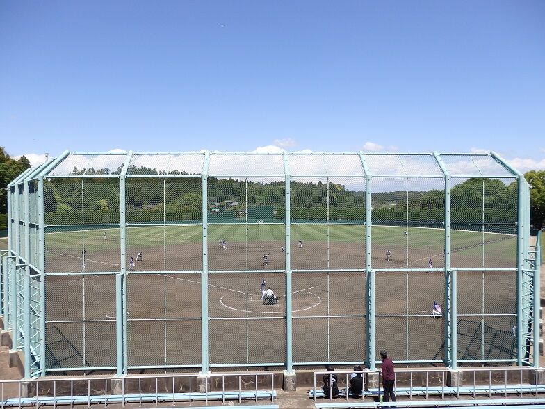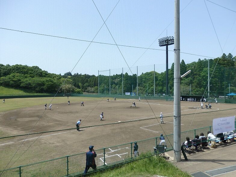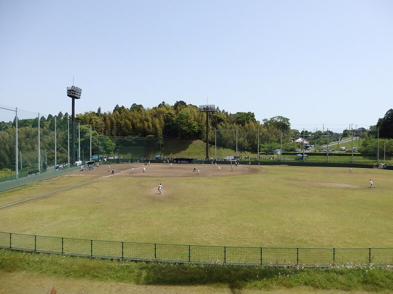 2021年05月02日 東金青年の森公園野球場 方位:北北西 住所:東金市松之郷186 両翼92m・中堅120m観客席:内野長椅子席が16列+芝生席、 屋根:なしスコアボード:手動式、 照明:なし {観戦・撮影日:R03.05.02}第25回東金市春季野球大会 二回戦 (NEXUS 8-0 グリーン トラックス) 「放送あり」{訪問・撮影日:H26.10.19}県中学新人軟式大会 準々決勝 (西原3-2習志野四) 「放送あり」球場一覧(目次&リンク集)